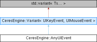 Public Member Functions inherited from CeresEngine::Variant< UIKeyEvent, UIMouseEvent > | |